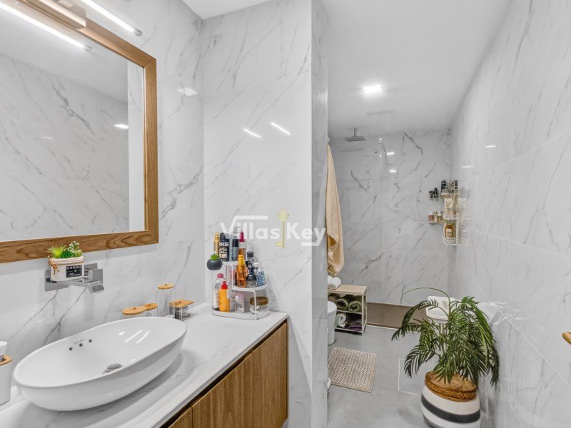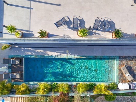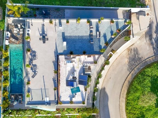 Ein 110 m² großer, möblierter Terrassenbereich mit Heizung und Meerblick, sowie zwei weitere Terrassen schaffen ideale Außenbereiche.