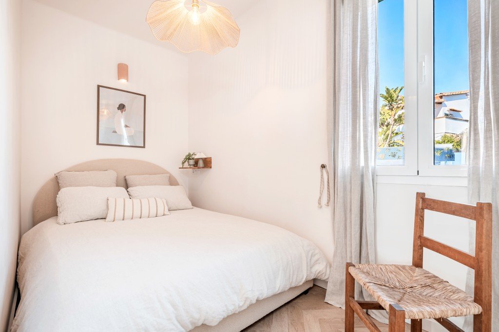 Die Immobilie bietet einen hellen, offenen Wohnbereich mit einem lichtdurchfluteten Wohn- und Esszimmer, einer voll ausgestatteten modernen Küche mit neuen Geräten sowie einem großzügigen privaten Balkon, der sich ideal für Mahlzeiten im Freien oder zum Entspannen in privater Atmosphäre eignet. Die Wohnung verfügt außerdem über neue Fenster, neue Sanitär- und Elektroinstallationen, drei Klimaanlagen mit Heizfunktion, praktischen Stauraum unter dem Bett, einen separaten Hauswirtschaftsraum mit Waschmaschine und Trockner sowie ein elegantes Badezimmer mit ebenerdiger Regendusche.