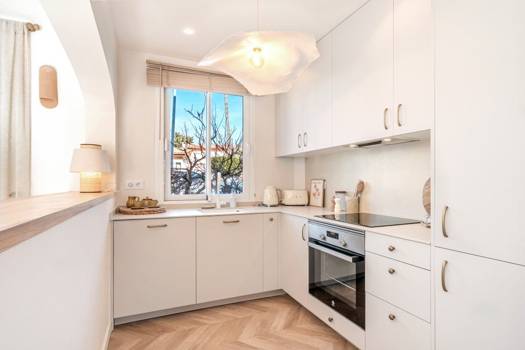 Diese renovierte Wohnung zum Verkauf in Portals Nous ist bezugsfertig und verbindet modernen Komfort mit entspanntem mediterranem Charme. Diese stilvolle Wohnung mit 2 Schlafzimmern befindet sich in einer der begehrtesten Küstenlagen Mallorcas und wurde mit natürlichen Materialien, Designer-Details und einer ruhigen, modernen Ästhetik hochwertig ausgestattet.