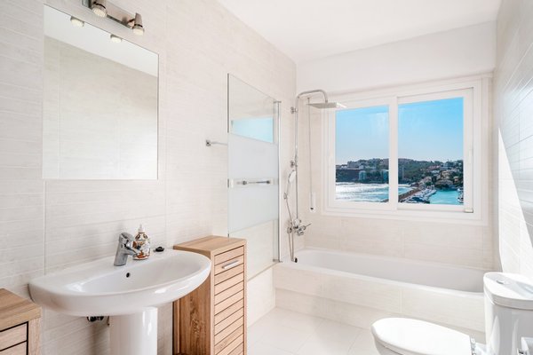 Die Master-Suite bietet einen atemberaubenden Blick auf die Bucht und verfügt über ein großzügiges Bad. Drei weitere Doppelzimmer bieten reichlich Platz für Familie und Gäste, ergänzt durch ein Familienbadezimmer und ein Duschbad. Mit zwei separaten Eingangstüren bietet die Wohnung Flexibilität für Gäste, Personalunterkünfte oder eine mögliche Unterteilung.