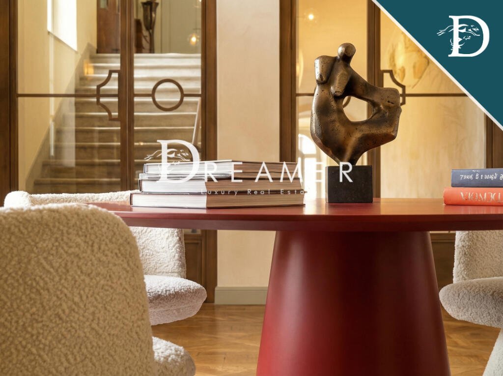 Die Restaurierung ist eine perfekte Balance aus handwerklichem Erbe und fortschrittlicher Technologie. Jedes originelle Detail wurde verbessert und mit modernsten Systemen, Smart-Home-Automatisierung, hochwertigen Naturmaterialien und individuell gestalteten Oberflächen kombiniert. Breitformatige Eichenparkettböden, Badezimmer aus prestigeträchtigem Marmor – darunter Calacatta mit goldener Adern – und restaurierte Fresken zeugen alle von der Exzellenz italienischer Handwerkskunst.