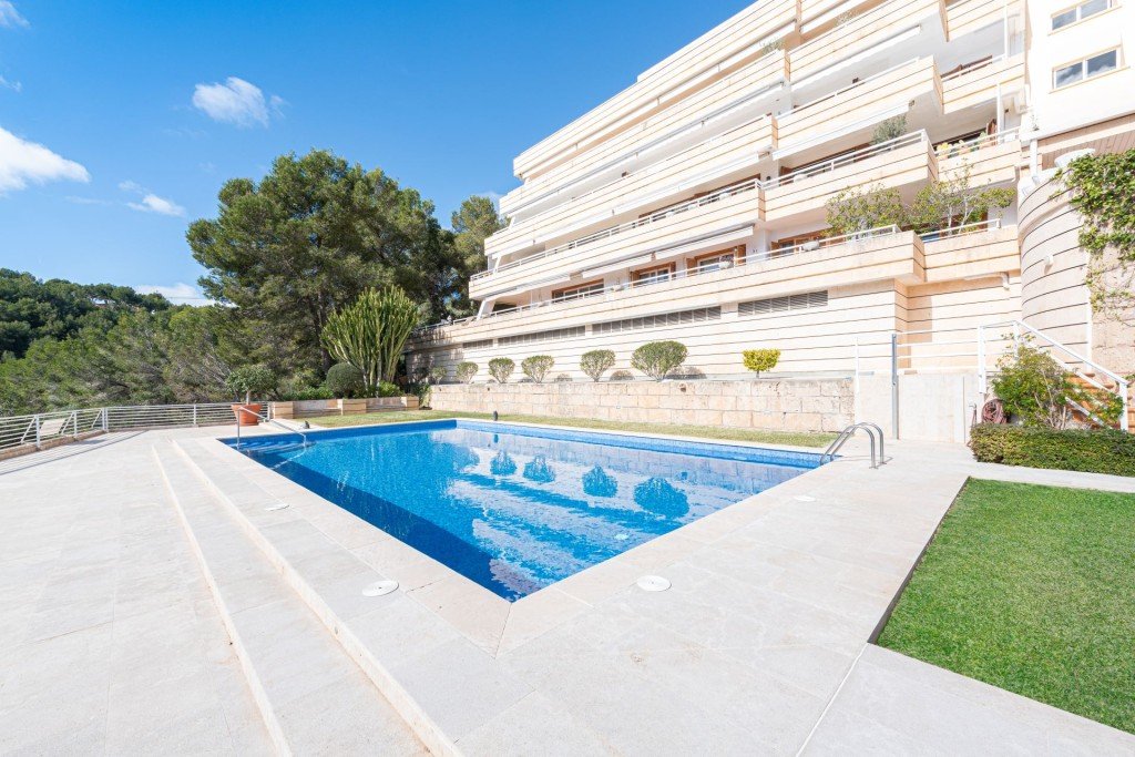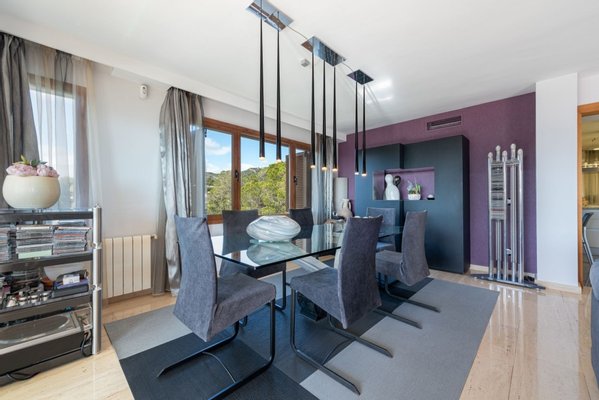 Wir freuen uns, Ihnen dieses außergewöhnliche Penthouse mit atemberaubendem Meerblick in einer der prestigeträchtigsten Gegenden Mallorcas, Cas Català, vorstellen zu dürfen. Die Immobilie verfügt über einen hellen und geräumigen Wohn-Essbereich mit