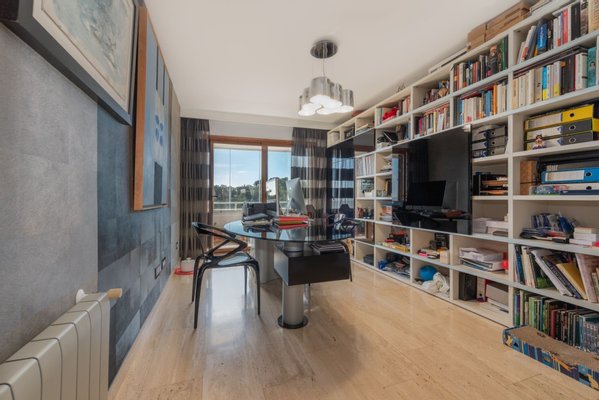 Das Penthouse verfügt über Marmorböden, einen Kamin, eine Zentralheizung mit Heizkörpern, eine Vorinstallation für eine Klimaanlage, Einbauschränke und große Fenster, die für viel Licht und eine großartige Aussicht sorgen. Der Verkauf umfasst zwei Parkplätze und einen Abstellraum. Die Wohnanlage verfügt über wunderschön angelegte Gärten und einen Swimmingpool.