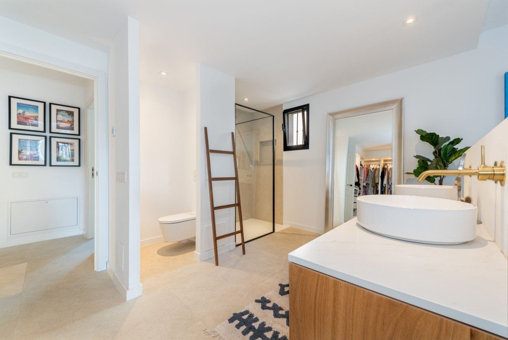 Dieses außergewöhnliche dreistöckige Haus bietet ein ideales Familienheim, weniger als 300 Meter vom Sandstrand entfernt. Das 1996 erbaute und im letzten Jahr umfassend renovierte Anwesen verfügt über helle, moderne Innenräume, hochwertige Oberflächen und eine äußerst funktionale Raumaufteilung, die für komfortables mediterranes Wohnen konzipiert ist.
