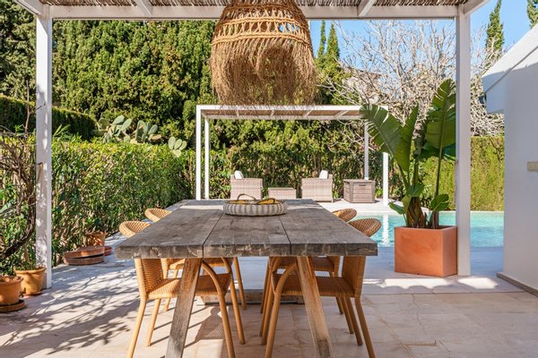 Der Außenbereich bietet einen privaten Garten, mehrere Terrassen zum Entspannen oder Essen im Freien, einen großzügigen Swimmingpool und einen praktischen Privatparkplatz. Die Außenbereiche sind perfekt gestaltet, um das mediterrane Klima Mallorcas das ganze Jahr über genießen zu können.