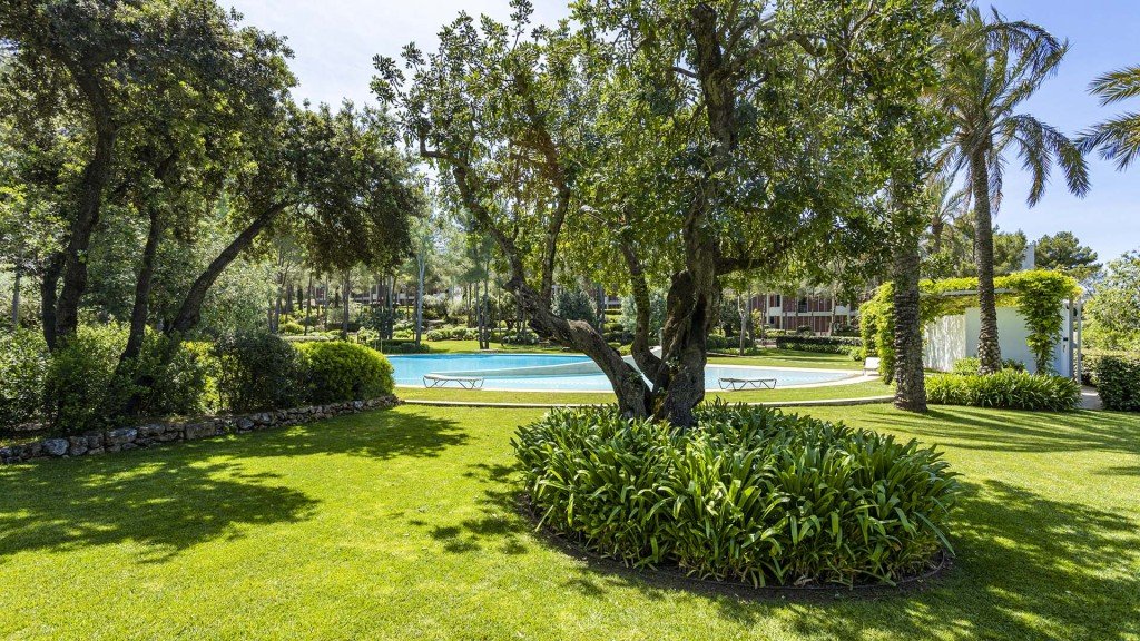 Die Wohnanlage selbst umfasst 80 Luxusapartments, die sich auf sechs Flachbauten verteilen und inmitten eines ca. 11.000 Quadratmeter großen, wunderschön angelegten Gartens mit mediterraner Vegetation liegen. Die Bewohner haben Zugang zu einem schönen Gemeinschaftspool, der eine ruhige und elegante Umgebung für Entspannung und Freizeit bietet.