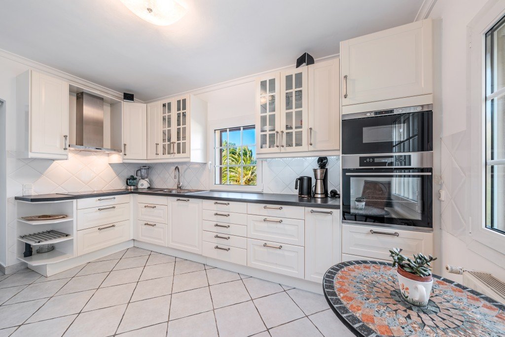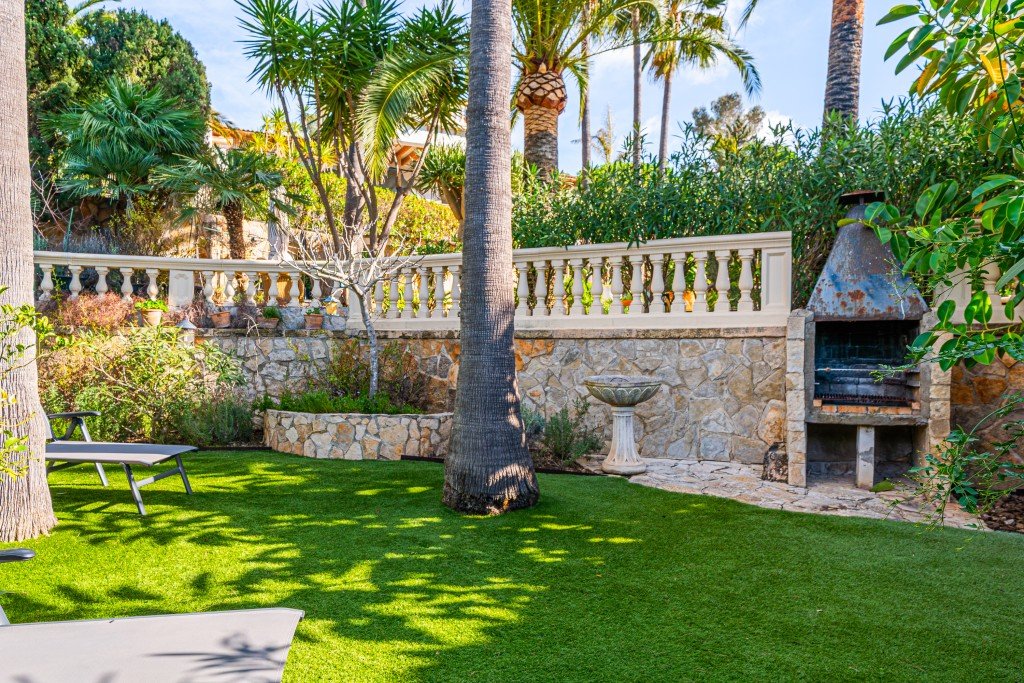 Im Außenbereich umgibt ein wunderschön angelegter mediterraner Garten die Villa und schafft mehrere ruhige Bereiche um sich zu entspannen und sich draussen aufzuhalten. Der private Swimmingpool bietet den perfekten Rahmen, um sonnige Tage zu genießen oder Gäste zu bewirten. Ein Außenparkplatz sorgt für zusätzlichen Komfort.