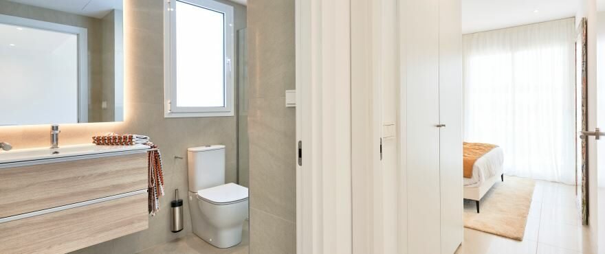 Hochwertig ausgestattet mit erstklassigen Materialien, verfügt jede Wohnung über einen Außenstellplatz. Weitere Vorteile sind sichere Parkplätze vor Ort, zusätzlicher Stauraum, Aufzug, doppelt verglaste Fenster, umweltfreundliche Klimatisierung und Klimaanlage.