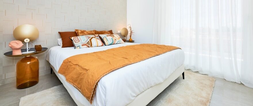Die Apartments sind in verschiedenen Ausrichtungen erhältlich, um Ihren Bedürfnissen gerecht zu werden. Erdgeschosswohnungen verfügen über große überdachte Terrassen und private Gärten, während die oberen Wohnungen großzügige Terrassen mit herrlichem Blick auf die Landschaft, Gemeinschaftsgärten und Pools bieten.