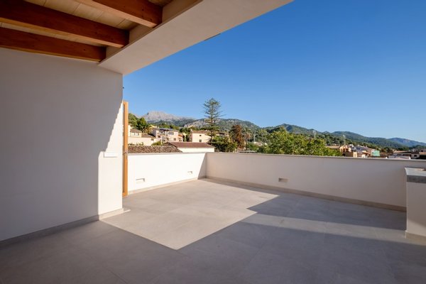 Ein echtes Highlight der Immobilie ist die geräumige Dachterrasse, die teilweise überdacht ist, eine Außenküche mit Vorinstallation für einen Mini-Kühlschrank und einen elektrischen Grill hat und einen fabelhaften Blick auf das Tramuntana-Gebirge bietet.