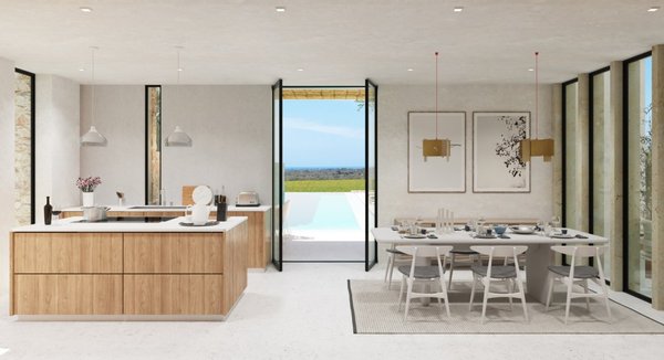 Das Anwesen liegt auf einem nach Süden ausgerichteten Grundstück und bietet einen 360-Grad-Blick auf die umliegende Landschaft, das Meer in der Ferne und die nahe gelegenen Berge. Da es keine Nachbarhäuser gibt, bietet es ein seltenes Gefühl von Abgeschiedenheit und Ruhe.