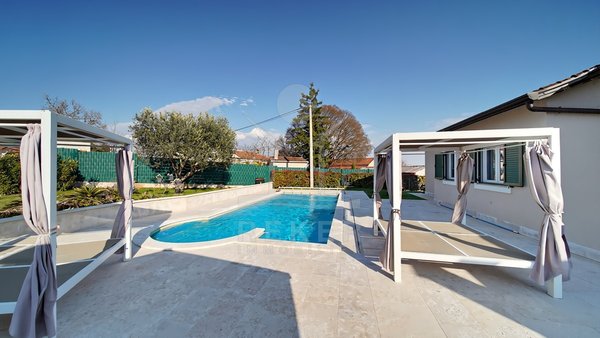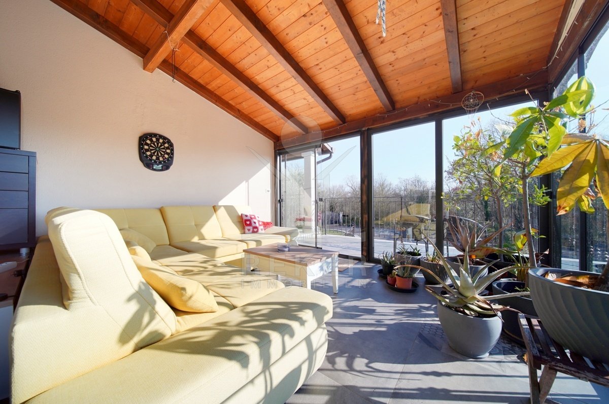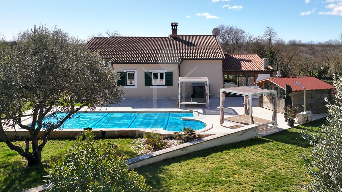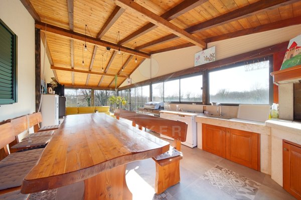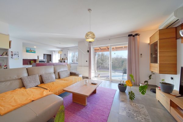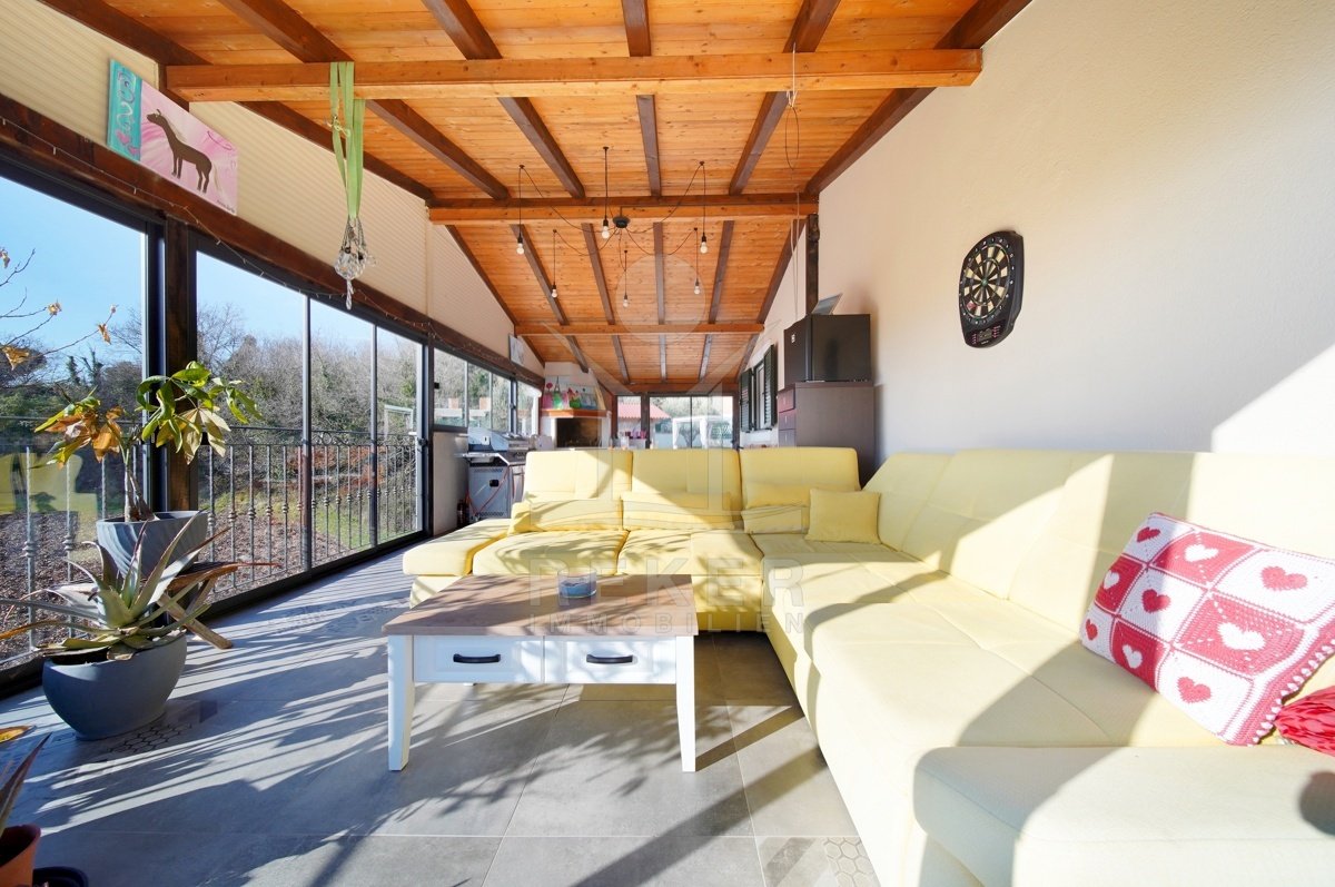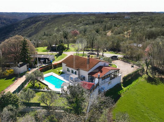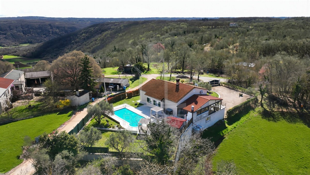 Dieses Familienhaus bei Tinjan bietet Ihnen Ruhe, Weitblick und viel Platz. Sie wohnen etwa 6 km vom Ort entfernt auf einem Südhang mit Blick über grüne Hügel. Die Ausrichtung bringt viel Tageslicht ins Haus und schafft eine freundliche Atmosphäre.
