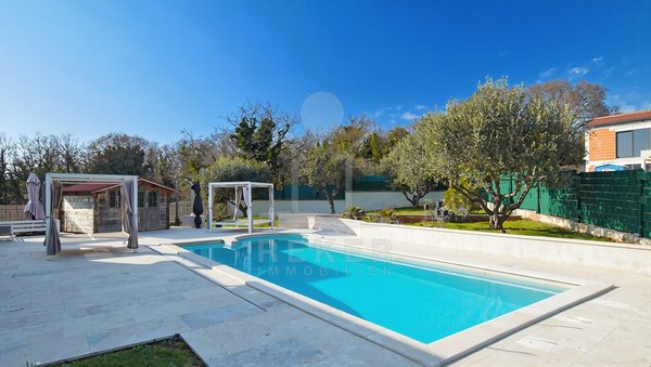 Das Grundstück umfasst 2.007 m² und ist vollständig als Bauzone ausgewiesen. Es ist eingezäunt und gepflegt. Viel Platz für eigene Ideen. Tropfbewässerung und Außenbeleuchtung sind bereits vorhanden. Im Mittelpunkt steht der 40 m² große Pool mit Mosaik, Salzwassersystem, Heizung und Abdeckung. Die Sonnenterrasse mit Liegen lädt zum Verweilen ein. Dazu kommen eine Außendusche und zwei Pergolen. Ergänzt wird der Bereich durch eine weitere Terrasse und eine überdachte Terrasse. Beide sind direkt mit der Sommerküche verbunden.