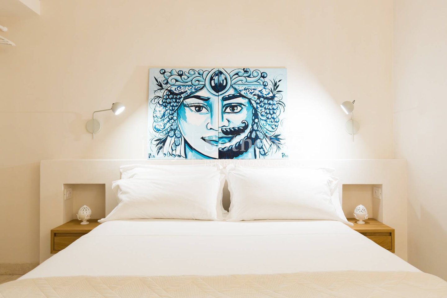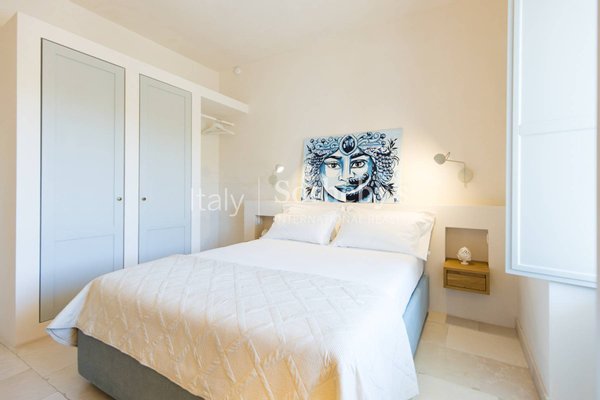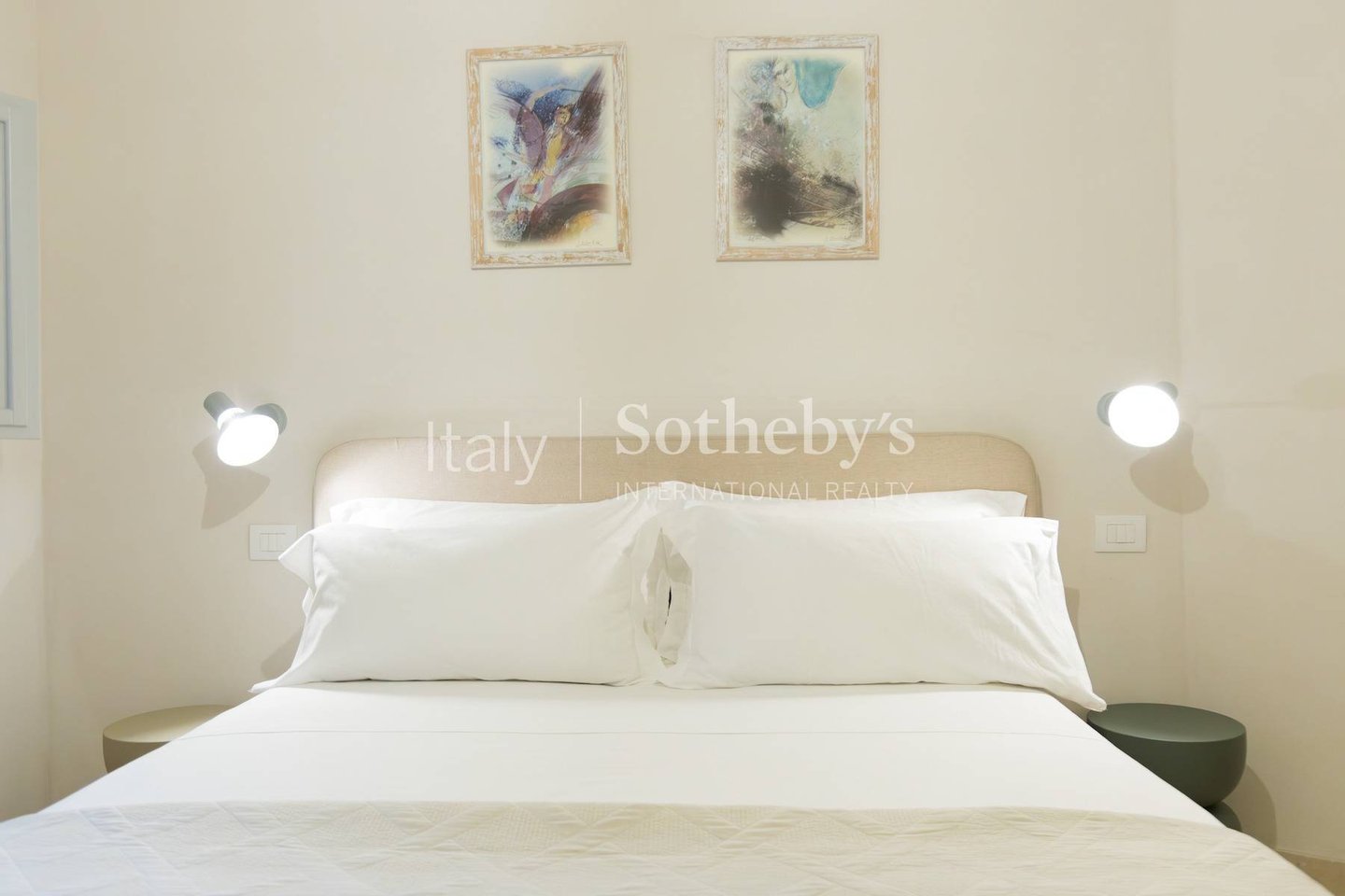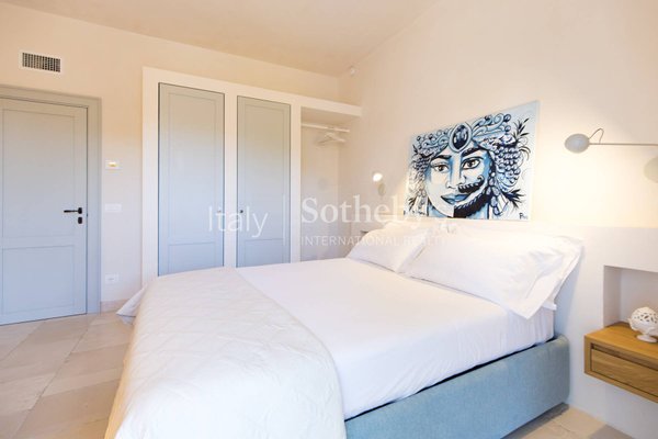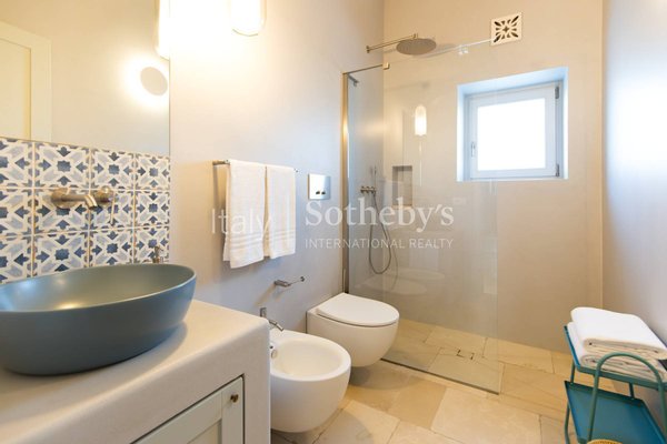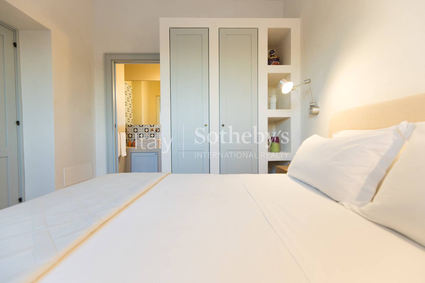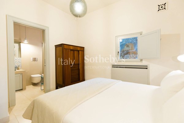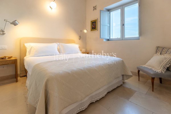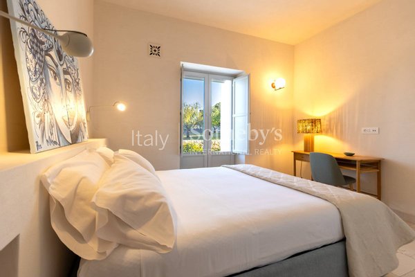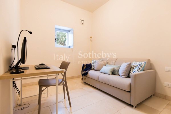 The layout unfolds across three distinct wings, ensuring privacy and flexibility for every guest. The historic Trullo Wing hosts two character-filled bedrooms, each with its own en-suite bathroom. The welcoming Garden Wing features three comfortable bedrooms, ideal for families. A third wing offers an additional double bedroom and an intimate studio space, perfect for quiet moments or extra accommodation.