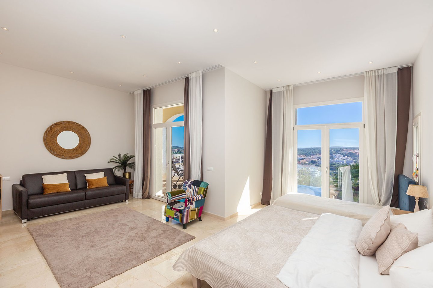 Santa Ponsa zählt zu den gefragtesten Wohnlagen im Südwesten von Mallorca. Das Ortszentrum sowie der attraktive Sandstrand sind in wenigen Minuten erreichbar. Zahlreiche Einkaufsmöglichkeiten, Restaurants und Bars befinden sich in unmittelbarer Nähe. Der exklusive Yachthafen Port Adriano ist etwa zehn Fahrminuten entfernt. Die Inselhauptstadt Palma sowie der internationale Flughafen sind in rund 20 bis 25 Minuten mit dem Auto erreichbar.