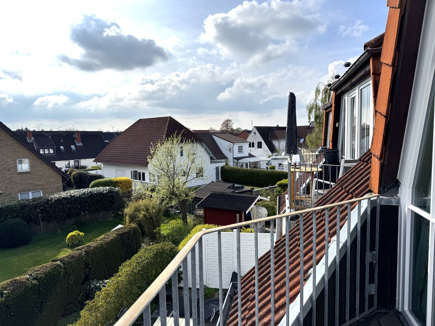 Vom Balkon haben Sie einen schönen Blick in die Nachbarschaft mit ihren liebevoll angelegten Gärten.