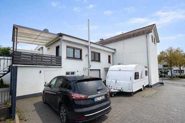 Hinter dem Haus befinden sich drei vollwertige, gut erreichbare Stellplätze. Die nach hinten ausgerichtete Terrasse mit Garten und großem Gartenhaus liegt in Nordostausrichtung und bietet einen ruhigen Rückzugsort.
