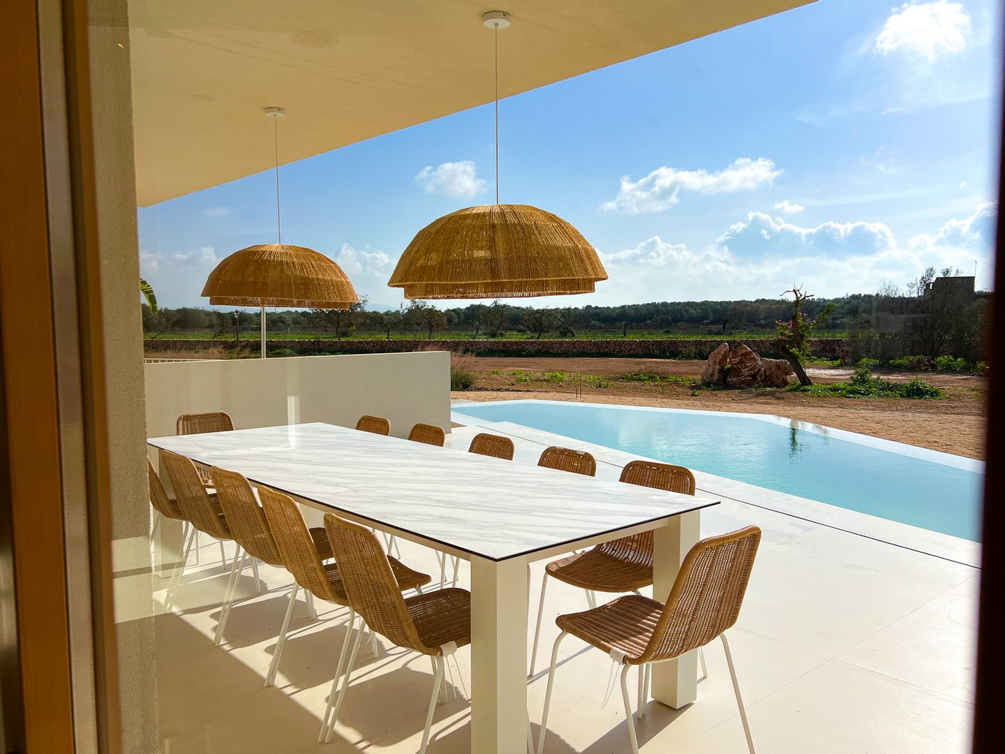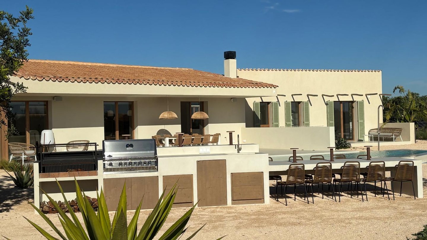 Es Revellar ist ein außergewöhnliches Anwesen nahe Campos im Südosten Mallorcas, das modernes Wohnen, Privatsphäre und technische Qualität auf besondere Weise verbindet. Die 2024 fertiggestellte Immobilie eignet sich sowohl als privater Rückzugsort als auch für das stilvolle Empfangen von Gästen oder Geschäftspartnern.