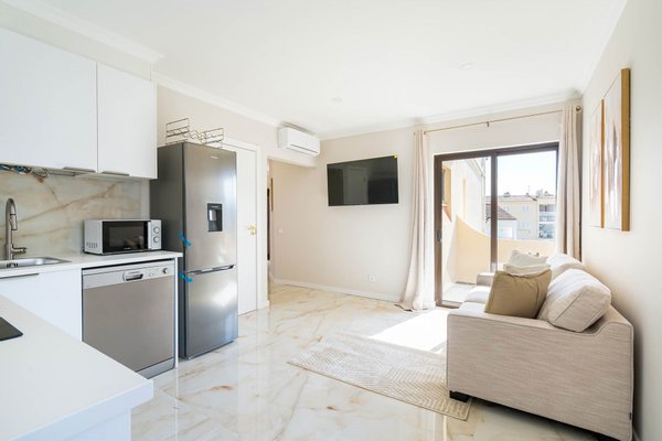 Sie verfügt über ein en-suite Schlafzimmer, eine voll ausgestattete Küche, offen zu einem hellen Wohnbereich, ein zweites Badezimmer und ein zusätzliches Zimmer, das als Büro oder Kinderzimmer genutzt werden kann. Zwei süd- und westlich ausgerichtete Balkone bieten perfekte Entspannungsflächen und zum Sonnenbaden im Algarve.