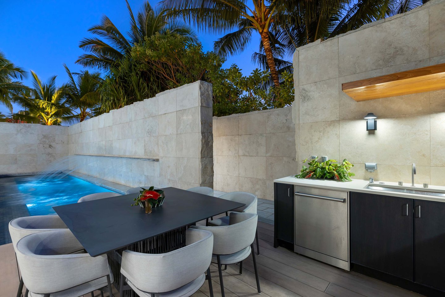 Willkommen bei Villa One at Waiea – eine unvergleichliche künstlerische Vision mit beeindruckenden Ausblicken auf den Pazifischen Ozean im Herzen des berühmten Ward Village in Honolulu. Diese fünfstöckige, über 7.000 Quadratfuß große Villa wurde maßgefertigt und sorgfältig unter der strengen Leitung von Howard Hughes kuratiert und stellt das Kronjuwel der Waiea-Gemeinschaft dar. Eingebettet in die lebendige globale Essensszene, luxuriöse Einkaufsmöglichkeiten sowie die erstklassige kulturelle und unterhaltsame Szene genießen Sie das Beste des Lebens in der Innenstadt von Honolulu – und das alles nur wenige Schritte vom Meer entfernt. Betreten Sie Ihr privates Paradies, meisterhaft erdacht vom renommierten Architekten James Cheng und meisterhaft entworfen von Tony Ingrao. Moderne und anspruchsvolle Innenräume mit drei Metern hohen Decken, reichlich natürliches Licht strömen nahtlos in die zahlreichen Außenbereiche, darunter ein privater Pool. Eine Autogarage mit vier Plätzen und hochwertigen Gebäudeservices bietet weiterhin ein unvergleichliches Erlebnis, verstärkt durch den Einrichtungspavillon mit einem voll ausgestatteten Spa, einem hochmodernen Fitnesscenter und einem Indoor-Golfsimulator. Diese ultraseltene Villa auf Erdgeschossebene ruft Luxus und Paradies hervor und simuliert das Leben auf einem Privatanwesen im Herzen von Honolulu. Details zur Immobilie und von Gelegenheiten bereitgestellt vom Verkäufer oder anderen; Käufer muss überprüfen.
