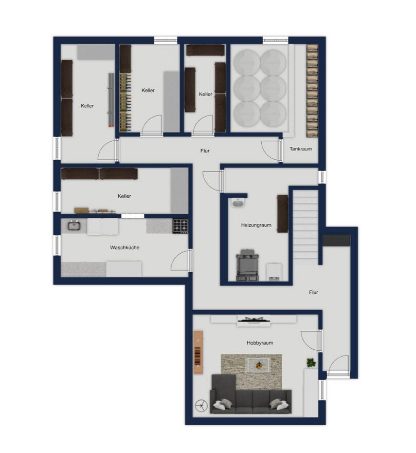 Ergänzt wird das Raumangebot durch eine Nutzfläche von ca. 93 m². Der Keller schafft wertvolle Abstell- und Arbeitsmöglichkeiten und unterstreicht die Funktionalität des Hauses, insbesondere für Hobbys, Werkstatt oder Lagerzwecke.