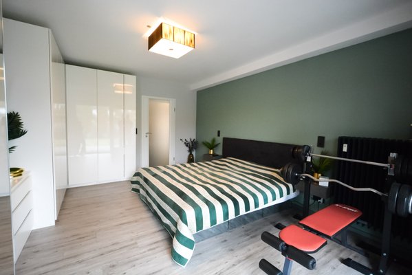 Insgesamt verfügt die Wohnung über drei gut geschnittene Zimmer, darunter zwei komfortable Schlafzimmer, die vielfältige Nutzungsmöglichkeiten bieten – beispielsweise als Kinder-, Gäste- oder Arbeitszimmer. Die Aufteilung auf zwei Ebenen sorgt zusätzlich für ein angenehmes Maß an Privatsphäre und unterstreicht den besonderen Maisonette-Charakter der Immobilie.