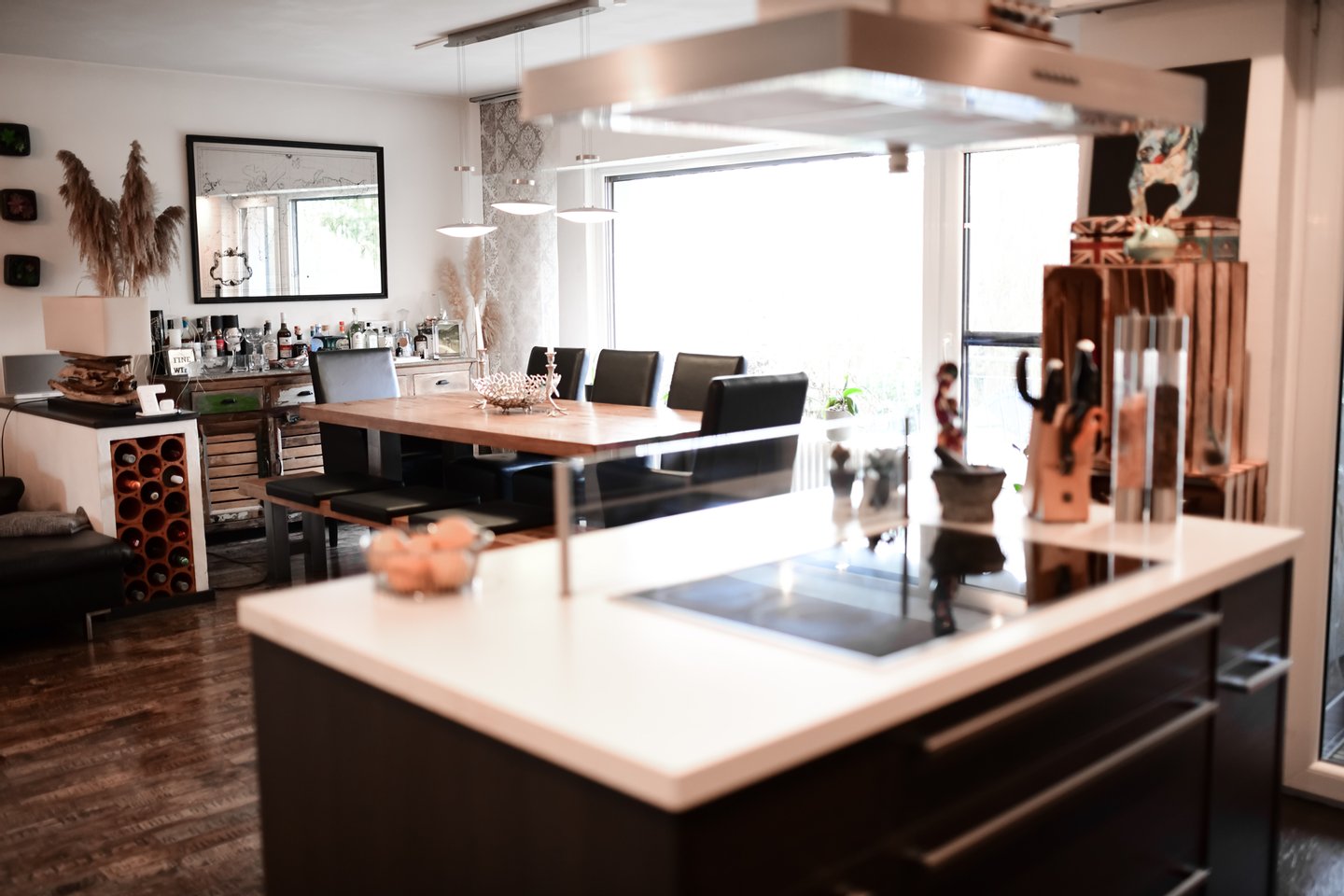 Der offen gestaltete Wohn- und Essbereich bildet das Herzstück der Wohnung. Große Fensterflächen sorgen hier für eine helle und freundliche Atmosphäre und schaffen ein einladendes Wohngefühl. Die integrierte Küche fügt sich harmonisch in den Wohnbereich ein und bietet ideale Voraussetzungen für gesellige Abende mit Familie und Freunden.