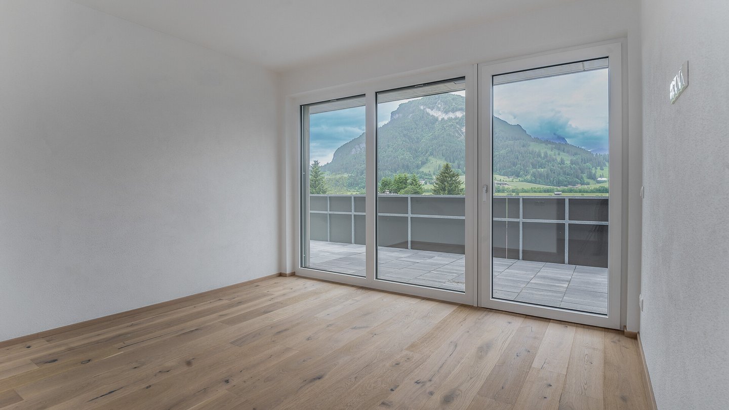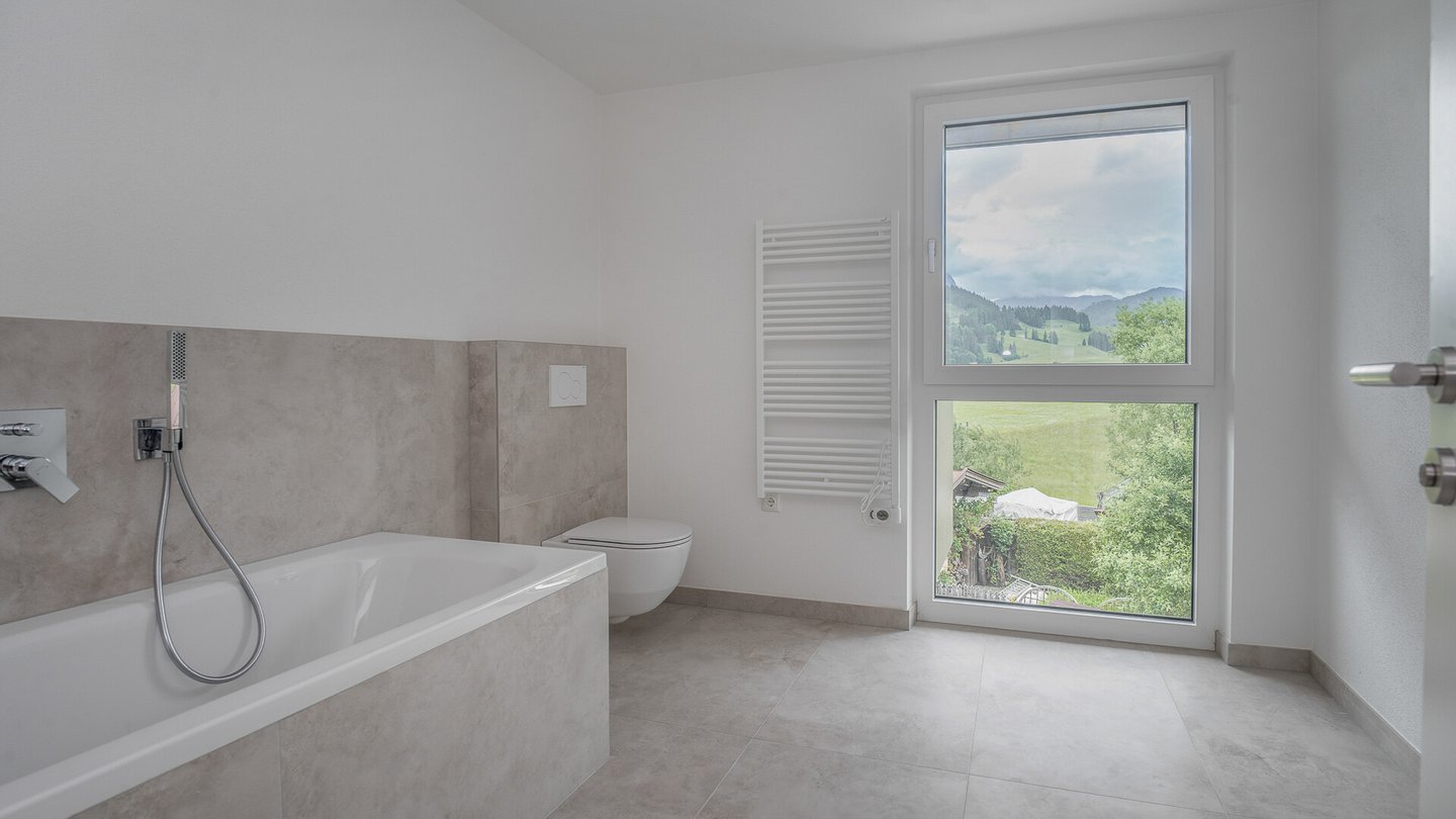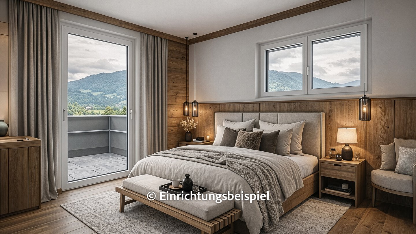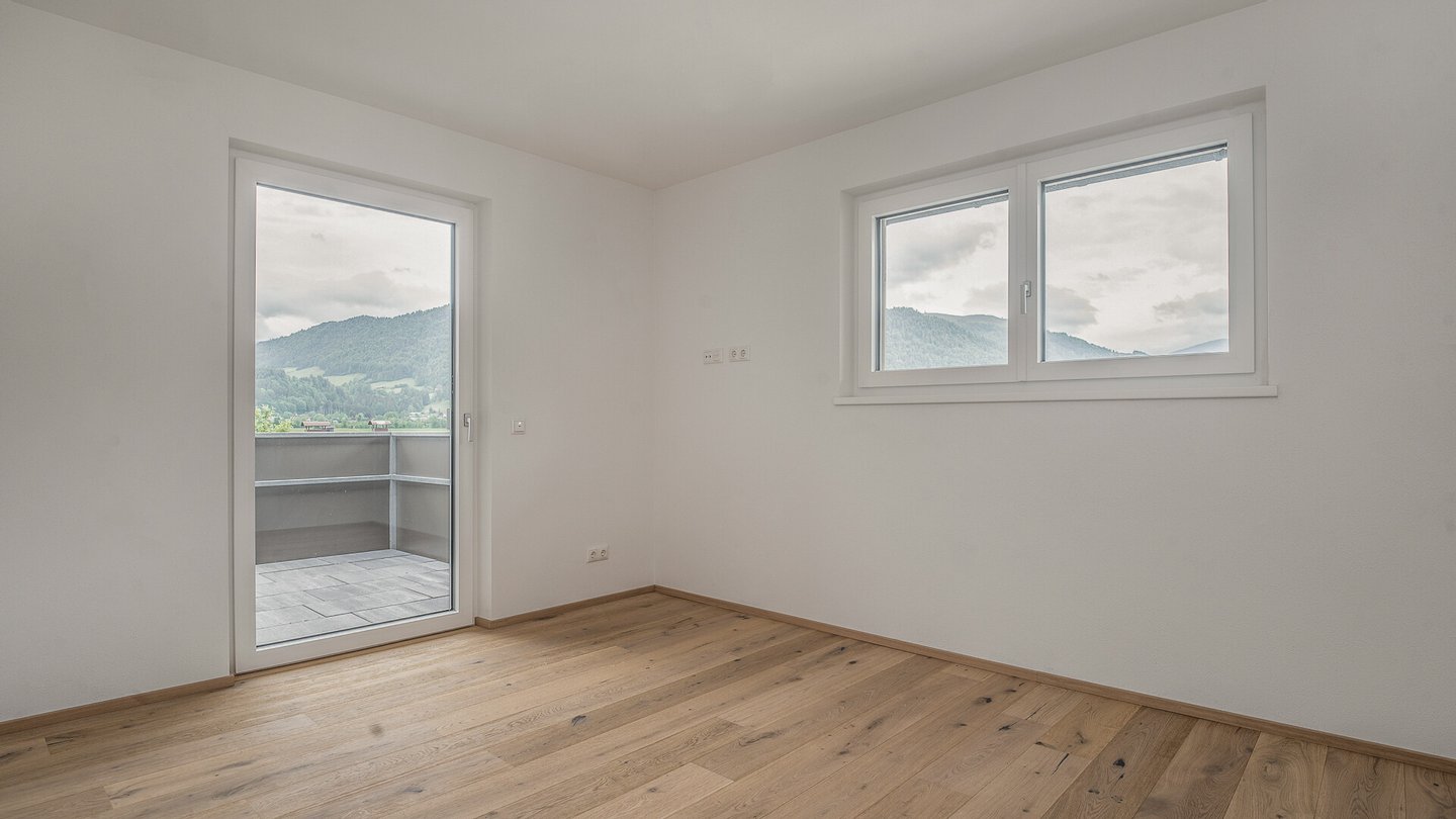 Ein weiteres Highlight der Wohnung ist der Master-Schlafbereich mit insgesamt 35 m², dieser besteht aus einer geräumigen Ankleide, einem Badezimmer mit Badewanne und großer Dusche sowie dem Schlafraum mit einem sensationellen Blick auf den Wilden Kaiser.