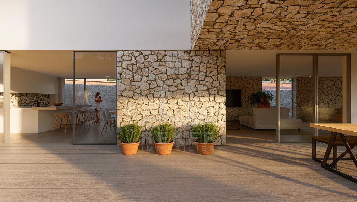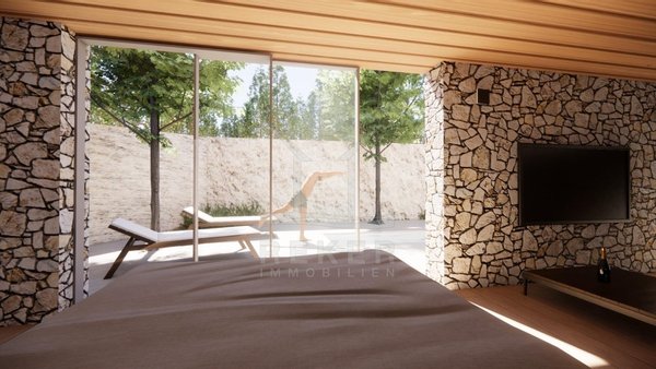 Diese exklusive Villa entsteht in außergewöhnlicher Lage auf der Insel Krk, nahe Vrbnik und nur 1 km vom Meer entfernt. Ein jahrhundertealter, geschützter Eichenwald umgibt das 946 m² große Grundstück. Sie genießen Ruhe, Privatsphäre und eine