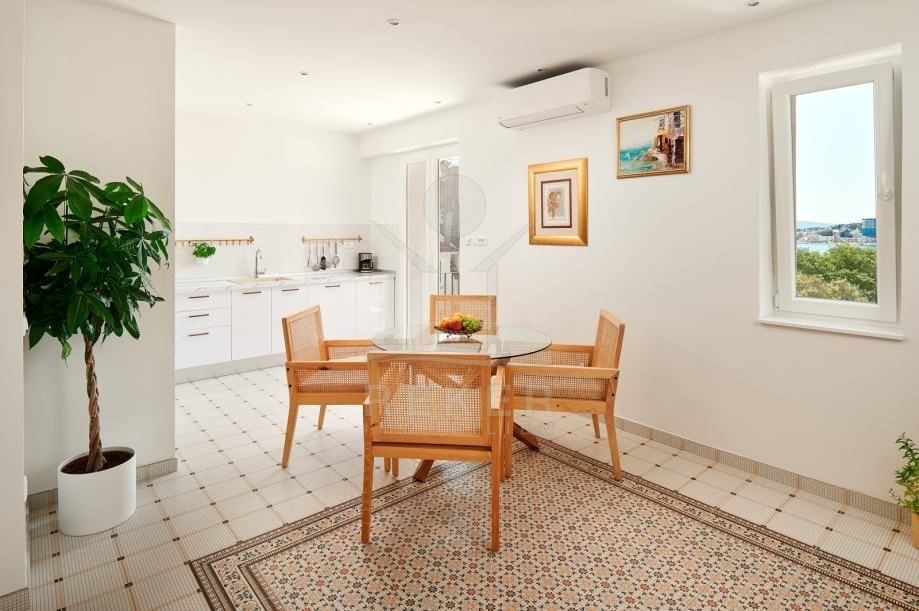 Diese hochwertig renovierte Wohnung befindet sich in einer der gefragtesten Lagen von Split. Nur 300 Meter trennen Sie vom Meer. Das Stadtzentrum erreichen Sie nach 200 Metern. Promenade und Westküste befinden sich praktisch vor Ihrer Haustür. Auch