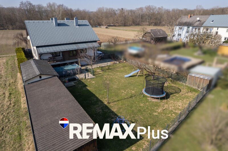 Auf dem rund 908 m² großen Grundstück erwartet Sie ein gepflegter Außenbereich mit viel Platz zur Entfaltung. Ein besonderes Highlight ist der private Pool, der an warmen Tagen für Erholung und Urlaubsfeeling im eigenen Zuhause sorgt.