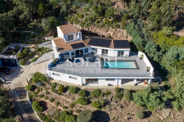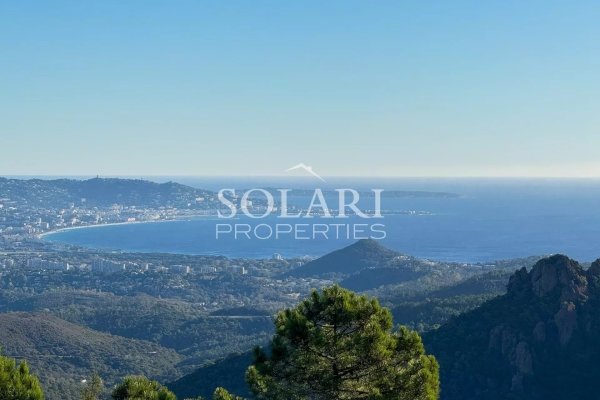 Diese 245 m² große Villa mit beheiztem Pool bietet einen Panoramablick auf das Meer, das Esterel und die Berge.