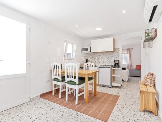 * Au rez-de-chaussée, au même niveau que la piscine, il y a un appartement séparé avec sa propre entrée. Il dispose d'un salon-salle à manger avec une cuisine ouverte (plus compacte que la principale), deux chambres supplémentaires et deux salles de bains complètes. Un espace idéal pour accueillir des invités ou de la famille en toute intimité.