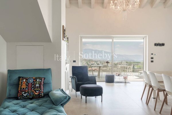 One of two residences within an elegant villa, the property is presented in impeccable condition, ready to move in and fully furnished. In energy class A3, with underfloor heating and air conditioning, it ensures comfort throughout every season. The open-plan living area, with kitchen, features large floor-to-ceiling windows opening onto a covered terrace-ideal for outdoor living and seamlessly connected to the garden, with pleasant views over the surrounding landscape.