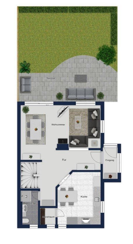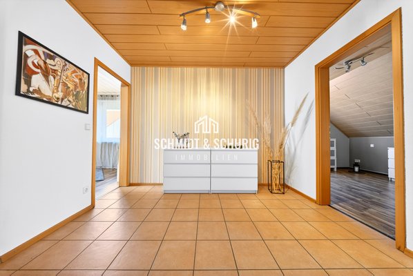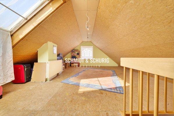 Zusätzliche Ausbaureserven bietet das Dachgeschoss, das weiteres Potenzial für individuellen Wohnraum bereithält. Ein Keller sorgt zudem für praktischen Stauraum und vielfältige Nutzungsmöglichkeiten.