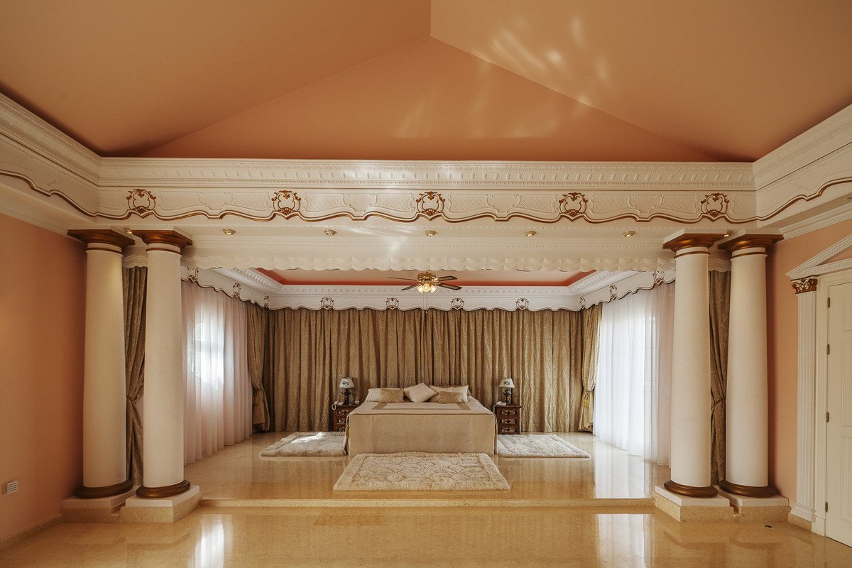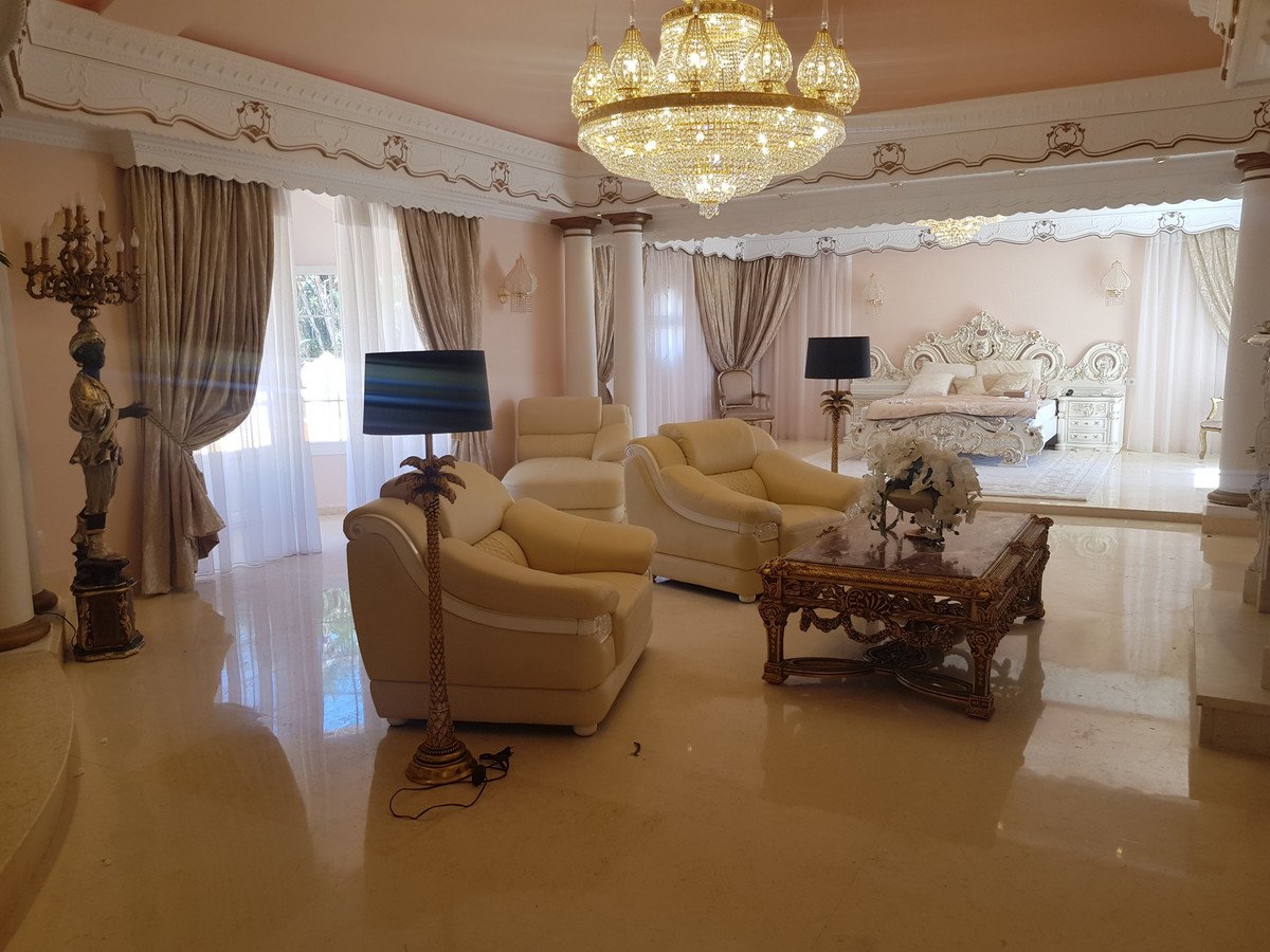 Bespoke Villa Created with Passion and without Compromise on Quality and Engineering. A luxurious home situated in the tranquillity and privacy of Sotogrande Alto. Ten years in the making and built to the highest standards, this is much more than a home, it is a work of art. The main house is set over two levels with a total of 6 bedrooms, 6 bathrooms, study, cinema room, kitchen with dining area, additional kitchen with pantry for extra catering, laundry, dining room, main living area and semi basement. A grand entrance hall with a spectacular curved marble staircase leads you to the upper level, also accessible by the lift. The upper level has two bedrooms, where you will find the master suite with living area and dressing room, with detailed hand painted finishes on walls and ceilings. The fixtures and fittings throughout this home are of the highest qualities The semi basement homes the most exquisite entertainment area with hand painted murals and golden ornate statues decorating the Egyptian lounge and cocktail bar. On this level you also have a further two guest suites, decorated in fitting with the ancient Egyptian theme and a modern gymnasium. Could there possibly be more to this already fabulously unique home ... now to the 'pièce de résistance'. From the Egyptian lounge you have entry into a miniature replication of Her Majesty's Theatre London, complete with royal boxes and seating for 50 guests. Set up and ready to host the classic stage show of Phantom of the Opera, a personal favourite of the owner and designer of the is magnificent property. Here you will enjoy producing your own stage performances, hosting small concerts or use this amazing space as a cinema as it is also equipped with projector and full sound system. Having the A7 accesible makes travel easy, with Málaga airport an hour drive and Gibraltar reachable within 20 minutes. Local hot spots such as Marbella and Puerto Banús are only 30 minutes, and the exclusive port of Sotogrande with its stylish bars and restaurants, world renowned golf courses and polo fields are on your doorstep.Our Professional Process & Client Commitment