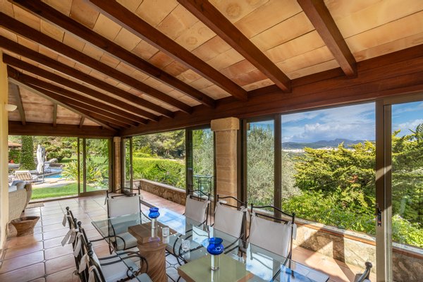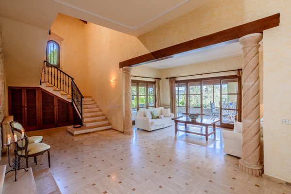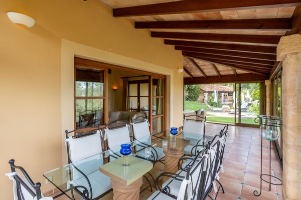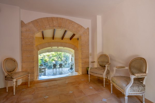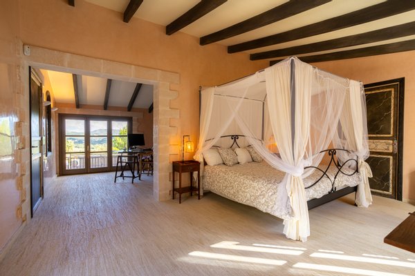 Das repräsentative Haupthaus besticht durch seine imposante Architektur. Auf einer Wohnfläche von rund 240m² bietet das Haupthaus ein Kaminzimmer mit 3 x 2 m grossem Panoramafenster, eine Küche mit Esszimmer, einen wunderschönen Salon, ein gemütliches Wohnzimmer, einen grossen Wintergarten, sowie zwei Schlafzimmer mit Bad ensuite. Die ehemalige Bodega wurde liebevoll in ein drittes Schlafzimmer mit Bad ensuite verwandelt.