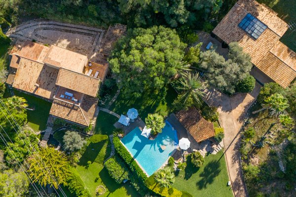 Das imposante Haupthaus mit repräsentativer Architektur und Raumhöhen von bis zu 4m befindet sich auf einem weitläufigen Areal von über 30.000 m². Das Grundstück verfügt über alten Baumbestand, einen grossen Poolbereich, verschiedene Terrassen, ein separates Gästehaus, 180 Weinstöcke, Tennisplatz, Schwimmteich, eine grosse Garage, wunderschöne Gartenanlage und viele weitere Extras.