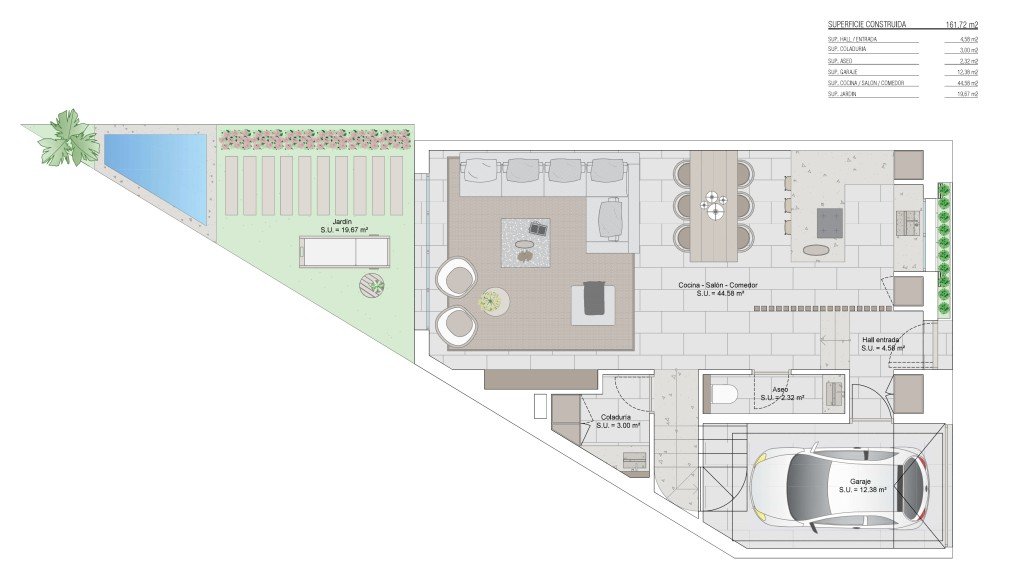 Jedes zum Verkauf stehende Haus erstreckt sich über zwei Etagen und verfügt über großzügige Außenbereiche, darunter Terrassen und eine Dachterrasse mit wunderschönem Meerblick. Die meisten Immobilien verfügen über einen privaten Garten-Patio mit Pool und Garage. Jedes Haus bietet drei Doppelzimmer, drei Badezimmer und ein Gäste-WC.