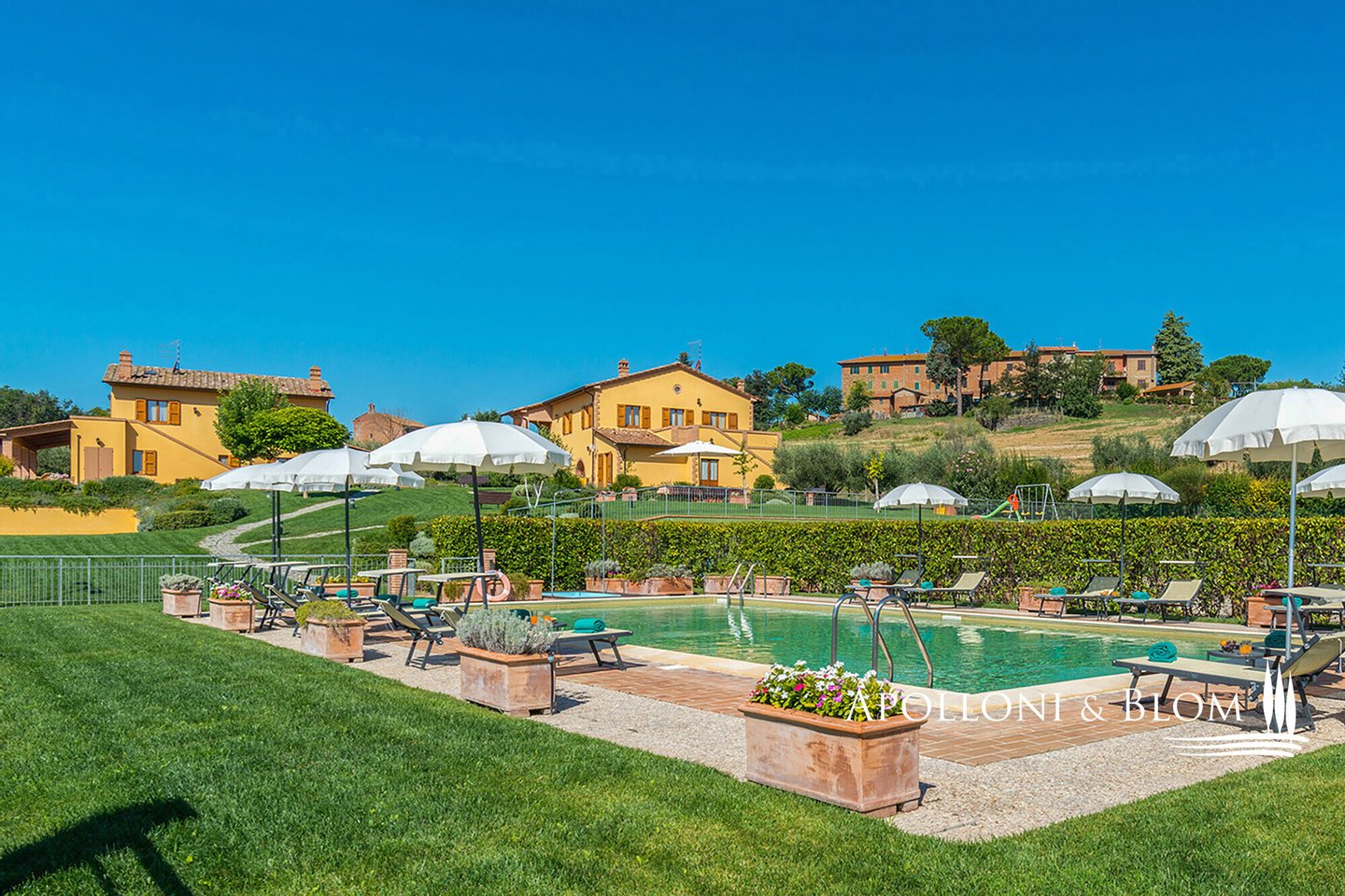 Jahrhundert mit zwei restaurierten Bauernhäusern und Nebengebäuden zum Verkauf. Auf dem sanften Bergrücken, der die Grenze zwischen der Toskana und Umbrien markiert, 3 km vom Ufer des Lago di Chiusi und 8 km vom Lago di Trasimeno entfernt, befindet sich ein Landgut mit großem Charakter, das die authentische Schönheit des Landlebens vermittelt. Auf mehr als 10 Hektar Privatgelände gelegen, wurde dieser antike ländliche Komplex aus dem 18. Jahrhundert einer Restaurierung unterzogen, die seine historische Seele bewahrt und gleichzeitig zeitgenössische Technologien und nachhaltige Lösungen eingeführt hat, elegant und funktionell, jetzt in der Energieklasse A4, in der Lage, den Charme der Tradition mit dem Komfort des modernen Lebens zu verbinden. Ein automatisches Tor führt zum Grundstück und zu einer gepflasterten Zufahrt, die den Park durchquert und sofort ein Gefühl von Privatsphäre und Harmonie mit der umgebenden Landschaft vermittelt. Im Zentrum des Anwesens befinden sich zwei alte Bauernhäuser, die von viel Grün umgeben sind und für das Familienleben, für Gäste oder für einen charmanten Gastgewerbebetrieb mit natürlicher Eleganz ausgelegt sind. Insgesamt bietet das Anwesen eine Fläche von 1.255 Quadratmetern, die sich auf helle und freundliche Räume verteilen, die alle mit Klimaanlage ausgestattet sind. Das erste Haus vereint gesellige Räume und unabhängige Wohnungen. Im Erdgeschoss befinden sich ein Empfangsbereich, ein reizvoller Speisesaal mit Backsteinbögen und Kamin, eine professionelle Küche und Wirtschaftsräume. Das Gebäude wird durch drei Wohnungen mit Wohnzimmer und Küche mit insgesamt vier Schlafzimmern und drei Bädern ergänzt. Das zweite Bauernhaus wurde als raffinierter Hospitality-Bereich konzipiert. Vier Zimmer mit eigenem Bad öffnen sich direkt auf die Pergola und den grünen Blick auf den Garten, während sich im Obergeschoss eine Panoramaterrasse und zwei unabhängige Wohnungen befinden, die aus Wohnzimmer mit Küche, Schlafzimmer und Bad bestehen. Das Untergeschoss beherbergt Technikräume und multifunktionale Räume, die sich leicht in Hobby- und Freizeitbereiche umwandeln lassen. Rundherum erstreckt sich der Park des Anwesens, ein Ort, an dem man die Freuden des Landlebens genießen kann: ein Panoramaschwimmbad, ein Tennisplatz, schattige Bereiche und offene Rasenflächen schaffen die perfekte Atmosphäre für Sommertage im Freien und Essen im Freien. Das Anwesen behält auch seine landwirtschaftliche Berufung bei. 120 Olivenbäume produzieren natives Olivenöl extra, während 2,4 Hektar Weinberge, die mit Grechetto Bianco DOC, Sangiovese und Cabernet Sauvignon bepflanzt sind, die Möglichkeit für eine kleine Weinproduktion bieten. Das Anwesen wird durch eine Reihe von Nebengebäuden vervollständigt, darunter ein 440 Quadratmeter großes Kellergeschoss, in dem ein Wellness- und Spa-Bereich eingerichtet werden kann, sowie ein Gebäude für die Lagerung von landwirtschaftlichen Erzeugnissen, dessen Dach mit Photovoltaik-Paneelen ausgestattet ist. Das gesamte Anwesen wird durch eine 29,9-kW-Solaranlage, einen artesischen Brunnen, eine Regenwassersammlung und hocheffiziente technische Systeme unterstützt. Das Anwesen ist sofort bewohnbar und eignet sich ideal als Landsitz für eine große Familie, als Treffpunkt für Freunde und verschiedene Generationen oder als touristisches Beherbergungsprojekt.
