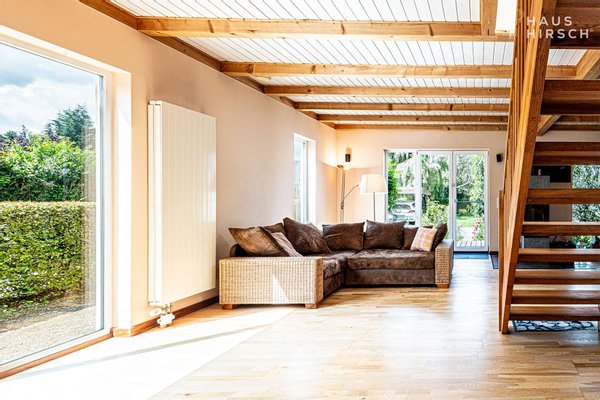 Das hier angebotene, großzügige Architektenhaus wurde 2010 in Holzständerbauweise mit ökologischer Zellulosedämmung nach KfW-55-Standard auf dem rückwärtig gelegenen Teil des insgesamt 983 m² großen Grundstücks errichtet und könnte bald Ihr neues Zuhause sein.