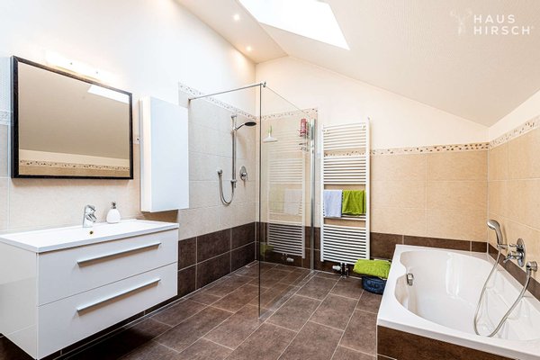 - Vollbad mit bodentiefer Dusche und Badewanne sowie Fußbodenerwärmung