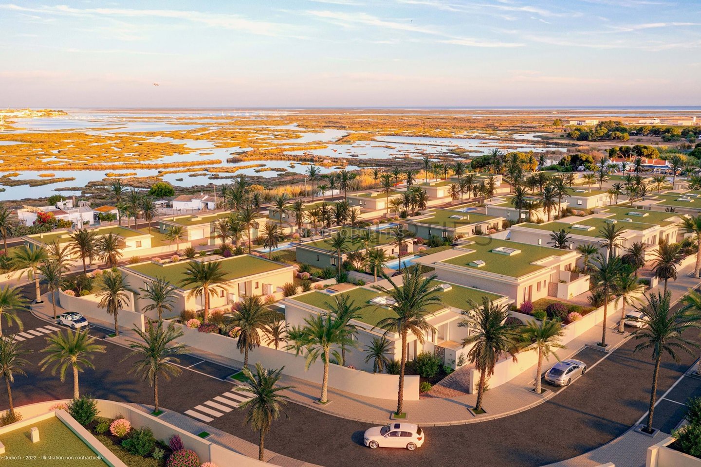 Discover an extraordinary opportunity to own a luxury villa in a brand-new development situated in the serene outskirts of Faro. Set within a stunning five-hectare condominium overlooking the breathtaking Ria Formosa lagoon, this exclusive community comprises 37 contemporary villas, nine of which are now available for sale.