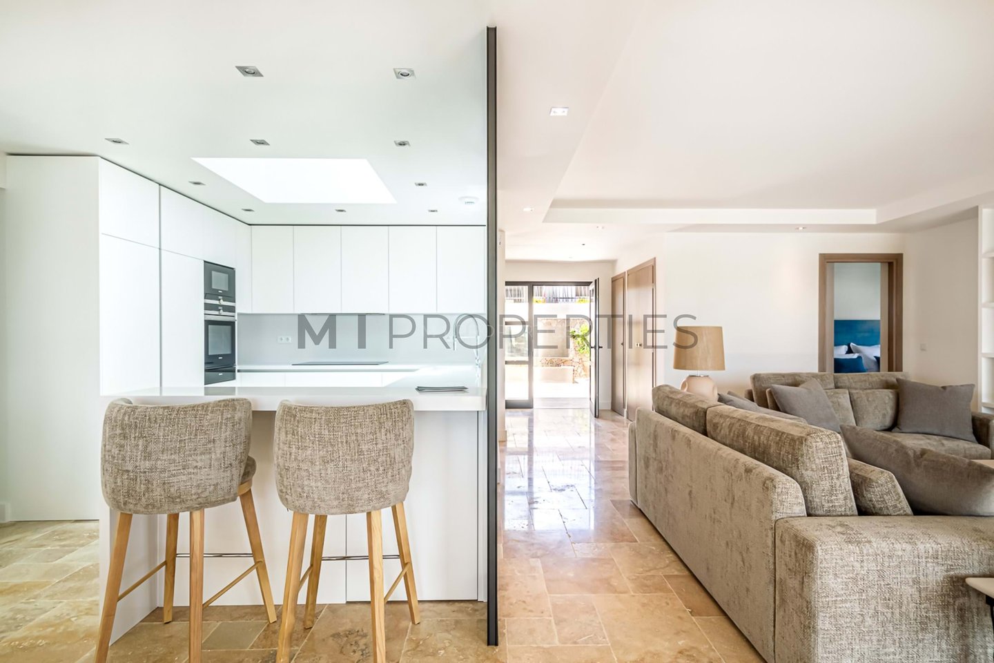 This exquisite villa offers four en-suite bedrooms, a bright and airy living room, a high-end fully equipped kitchen, and a spacious dining area illuminated by an elegant skylight. Designed with meticulous attention to detail, only the finest materials have been selected for a sophisticated finish.
