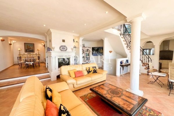 Built on three levels, it consists of a double living room with a fireplace and a kitchen opening onto a semi-covered terrace overlooking the pool area.