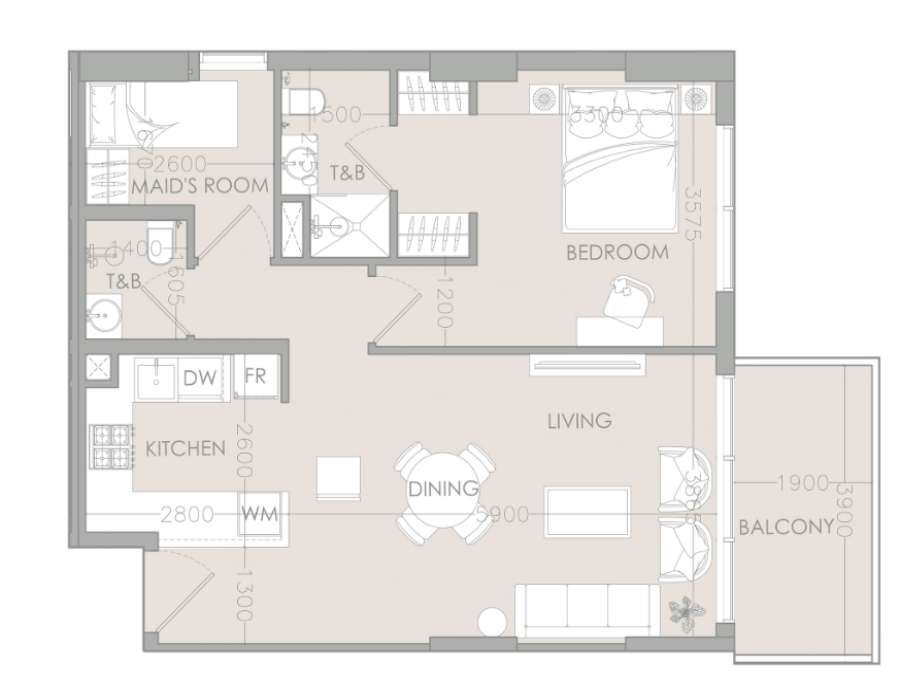Anbieter-ObjektnummerIr1dian 1BHK+Maidsroom APT-DV-11318