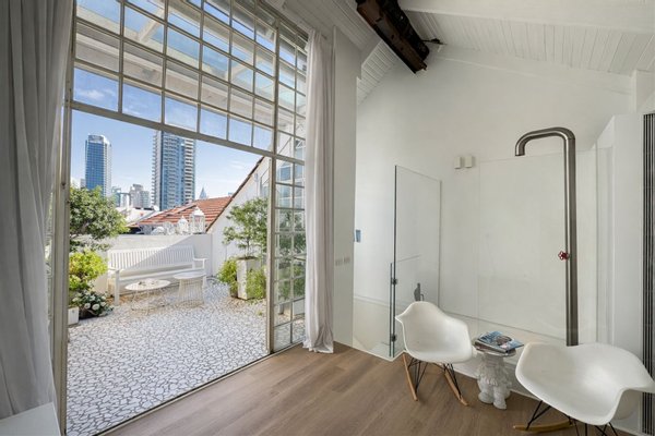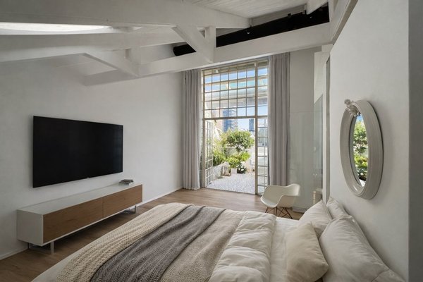 Cottage-Einheit in einem erhaltenen Gebäude mit großzügigen Innenräumen, hohen Decken und einem privaten Balkon vom Hauptschlafzimmer mit Blick auf Neve Tzedek.