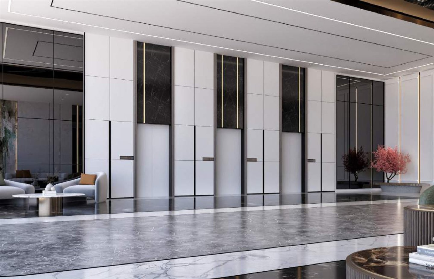 → Gebäude: Infinity-Pool, Fitnessstudio, Yogastudio, Spa, Kinderbereich, Concierge, 24h-Sicherheit