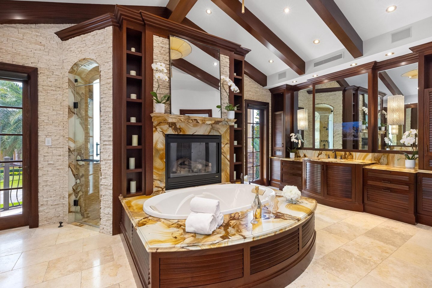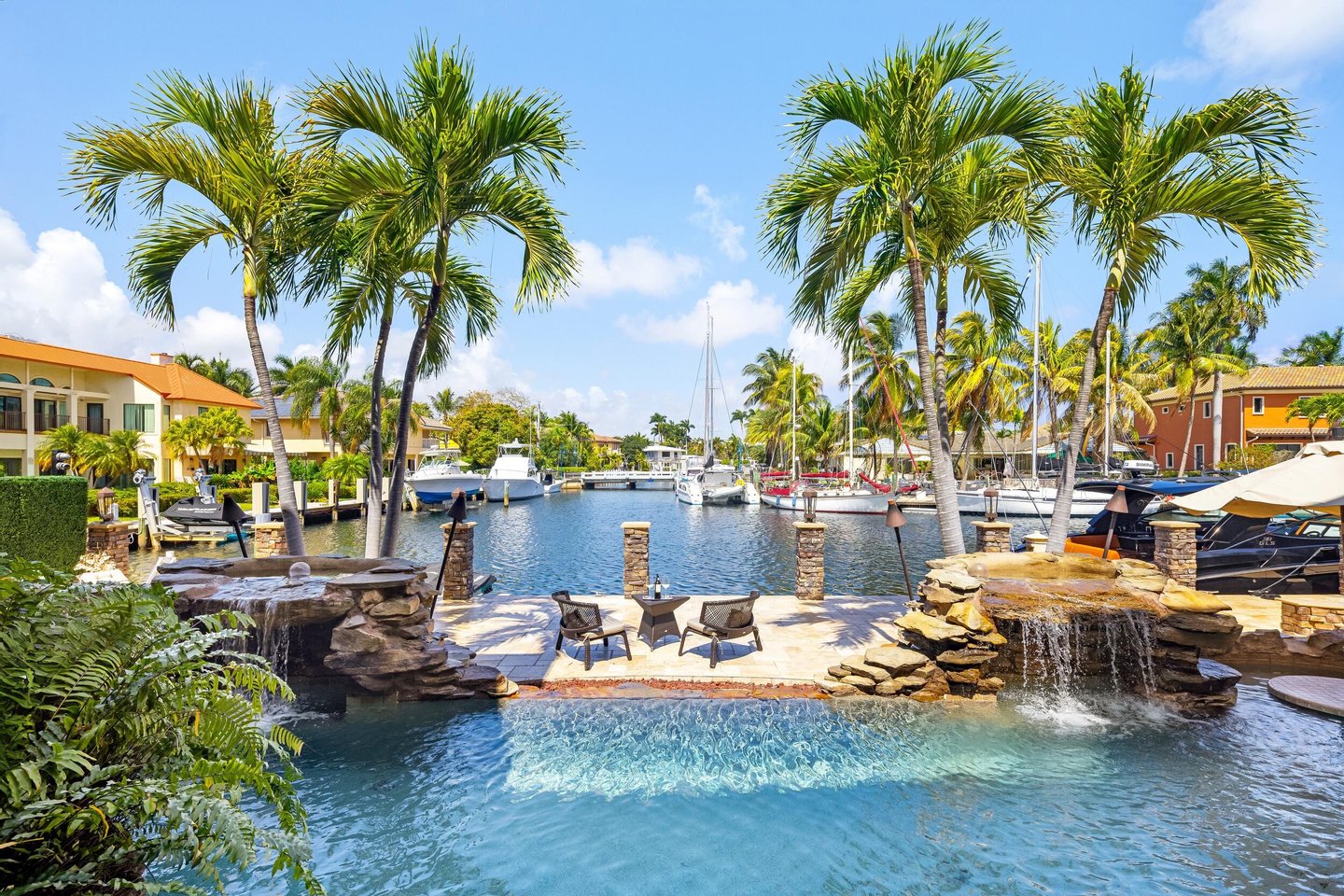Hier ist Villa Tremezzo, ein privat umschlossenes West Coast Contemporary-Anwesen in Lighthouse Points prestigeträchtigster Enklave. Hinter üppiger Landschaft und beeindruckenden Steinmauern gelegen, bietet dieses außergewöhnliche Haus am Wasser außergewöhnliche Privatsphäre, zeitlose Architektur und bemerkenswerte Handwerkskunst durchgehend. Ein großartiger Auftritt führt in Innenräume, die von seltenem versteinerten Holzsteinmetzwerk, kunstvollen Holzarbeiten und eleganten brasilianischen Marmorböden geprägt sind. Das Haus ist sowohl für luxuriöses Wohnen als auch für Unterhaltung konzipiert und verfügt über eine Kochküche mit Thermador-Gasgeräten, sechs Brennern, Akzenten der Chicagoer Backsteindecke und eine versteckte Butler-Speisekammer. Smart-Home-Technologie integriert Beleuchtung, Ton, motorisierte Schirme, Klima und Sicherheit im gesamten Haus. Das Resort-Stil im Outdoor Living dreht sich um einen spektakulären Infinity-Pool mit Wasserfällen, Grottensitzplätze unter herabstürzendem Wasser, ein Spa, ein Sonnenregal und farbwechselnde Beleuchtung. Der weitläufige Außenbereich verfügt außerdem über eine Sommerküche, Puttinggrün, eine Außendusche, Feuerfackeln und wunderschön beleuchtete tropische Landschaften, die unvergessliche Abende ermöglichen. Das Zuhause bietet ein außergewöhnliches Unterhaltungserlebnis mit einem vollständig schalldichten professionellen Theater mit 130-Zoll-Leinwand und einem hochwertigen Sony-Projektionssystem sowie einem Spielzimmer und einer Bar. Im Obergeschoss führt ein dramatischer Brückenflur zu einem geteilten Schlafzimmer-Layout, in dem jedes Schlafzimmer eine eigene private Terrasse, einen begehbaren Kleiderschrank und ein eigenes Bad hat. Die luxuriöse Hauptsuite verfügt über weitläufige Terrassen, ein Spa-Bad mit Multi-Jet-Dusche, Kamin, maßgeschneiderte Bar und Kleiderschränke im Boutique-Stil. Weitere Highlights sind ein Aufzug, ein Generator für das ganze Haus, vier neuere Klimaanlagen, Kupferrinnen, Wasserfiltration und Entschärfung für das ganze Haus, ein zentraler Staubsauger, fortschrittliche Sicherheitskameras und umfangreiche Smart-Home-Automatisierung. Ursprünglich 2014 fertiggestellt und umfassend modernisiert, ist Villa Tremezzo ein seltenes, maßgefertigtes Ausstellungsgebäude, das für den anspruchsvollsten Käufer konzipiert wurde. Die veröffentlichten und bereitgestellten Informationen, einschließlich Preise, Maße, Quadratmeter, Grundstücksgrößen, Merkmale, Oberflächen und Berechnungen, unterliegen Fehlern, Auslassungen oder Änderungen ohne Vorankündigung. Alle derartigen Informationen sollten unabhängig überprüft werden. Alle Parteien sollten ihre eigene Sorgfaltspflicht durchführen, um alle Informationen zu überprüfen.