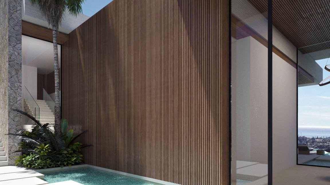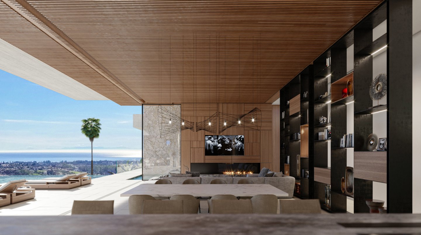 Die Architektur legt Wert auf fließendes Wohnen zwischen Innen- und Außenbereichen, mit einem spektakulären Infinity-Pool als Herzstück, einem abgesenkten Loungebereich und einer Außenküche – ideal zum Unterhalten oder Entspannen. Landschaftlich gestaltete Gärten und dezente Wasserelemente sorgen für Ruhe und eine harmonische Verbindung zur Natur.